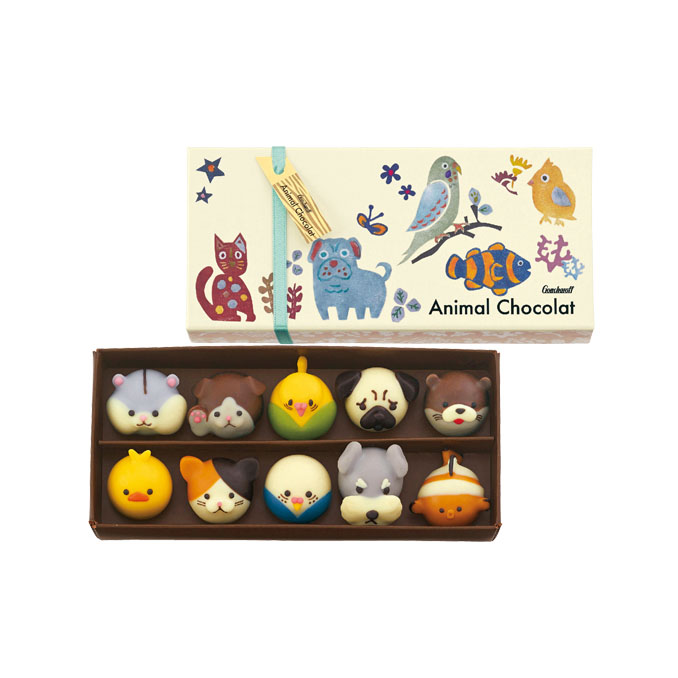 あっ!「mog mog zoo」のみんなが おすすめのチョコレート を持ってきてくれたみたい!
